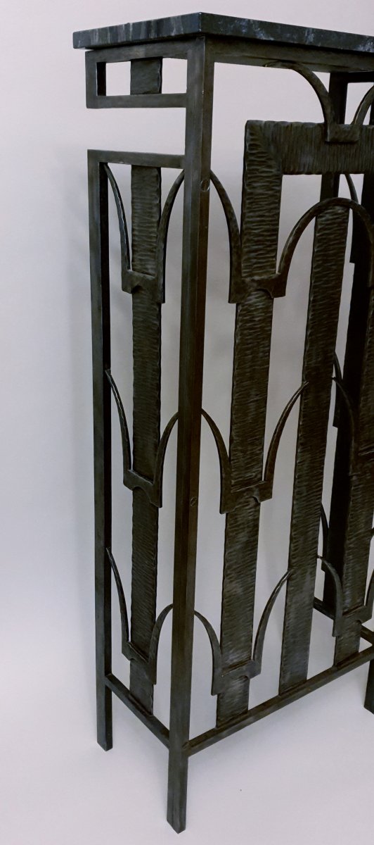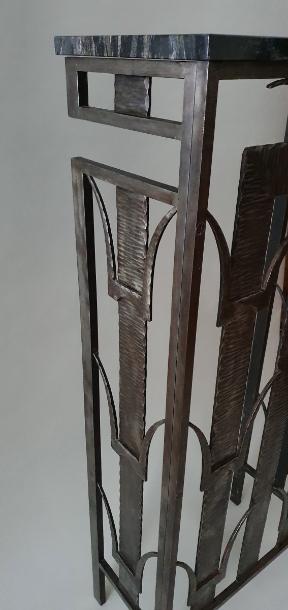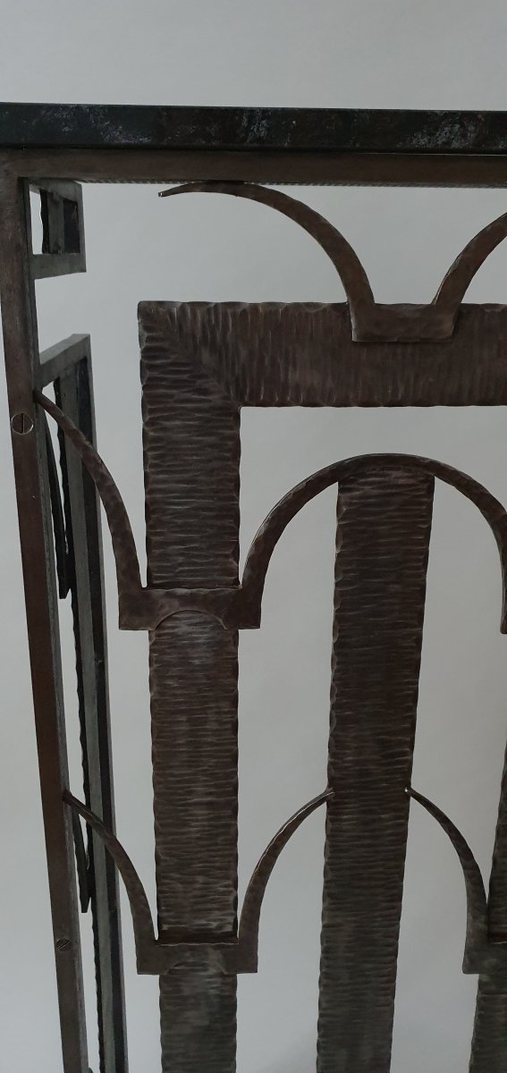 Console art deco en fer forgé avec un marbre en trés bon état.